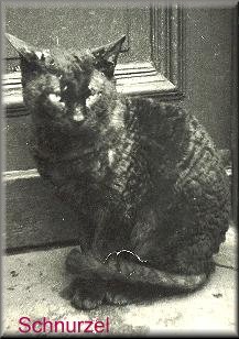 kiharakarvaista kissaa (Lämmchen, Schnurzel, Preuss) ovat nykyisten german rexien taustalla.